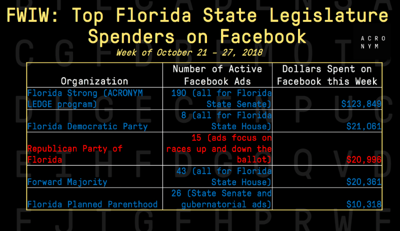 While millions of dollars are being poured into House and Senate races in Florida (to the tune of $6.8 million on Google platforms alone), Democrats also have an opportunity to gain control of the Florida State Senate, which would break the GOP’s trifecta in the state for 18 of the last 20 years. Democrats need to gain just 5 seats in the upper chamber to win the majority- and 20 out of the 40 seats are on the ballot this cycle.
