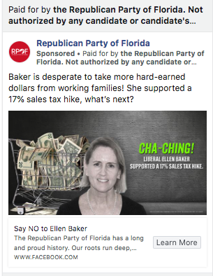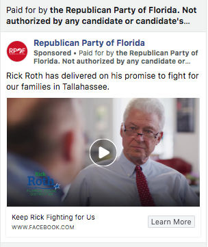 On the GOP side, the Republican Party of Florida is running a range of ads targeting races up and down the ballot, including both positive and negative ads around state legislative candidates: