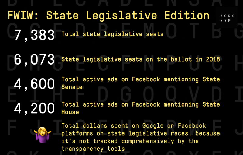 On Election Day, we’ll be monitoring these chambers closely, in addition to state legislative races in Pennsylvania, North Carolina, Wisconsin and Minnesota. Check in with us at [email protected] or follow us on Twitter at @anotheracronym for updates.