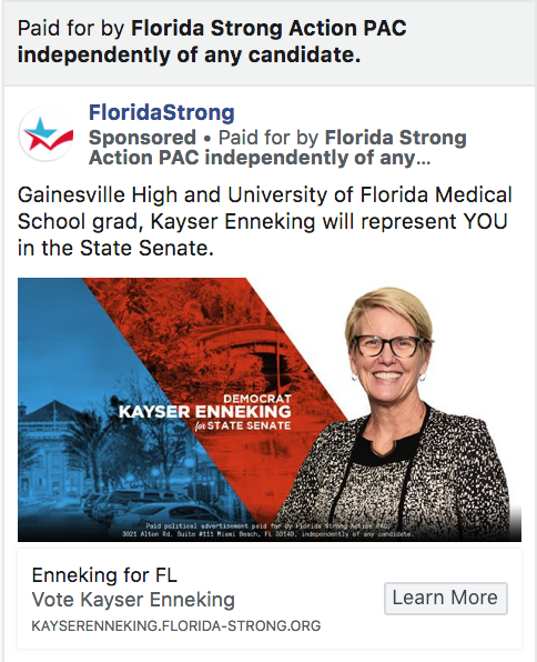 As part of ACRONYM’s LEDGE program, a $10 million digital campaign to elect progressives to state chambers across 6 states, we are supporting a half-dozen candidates running for the Florida State Senate. Here are a few of our ads aiming to raise these candidates’ name ID in their communities.