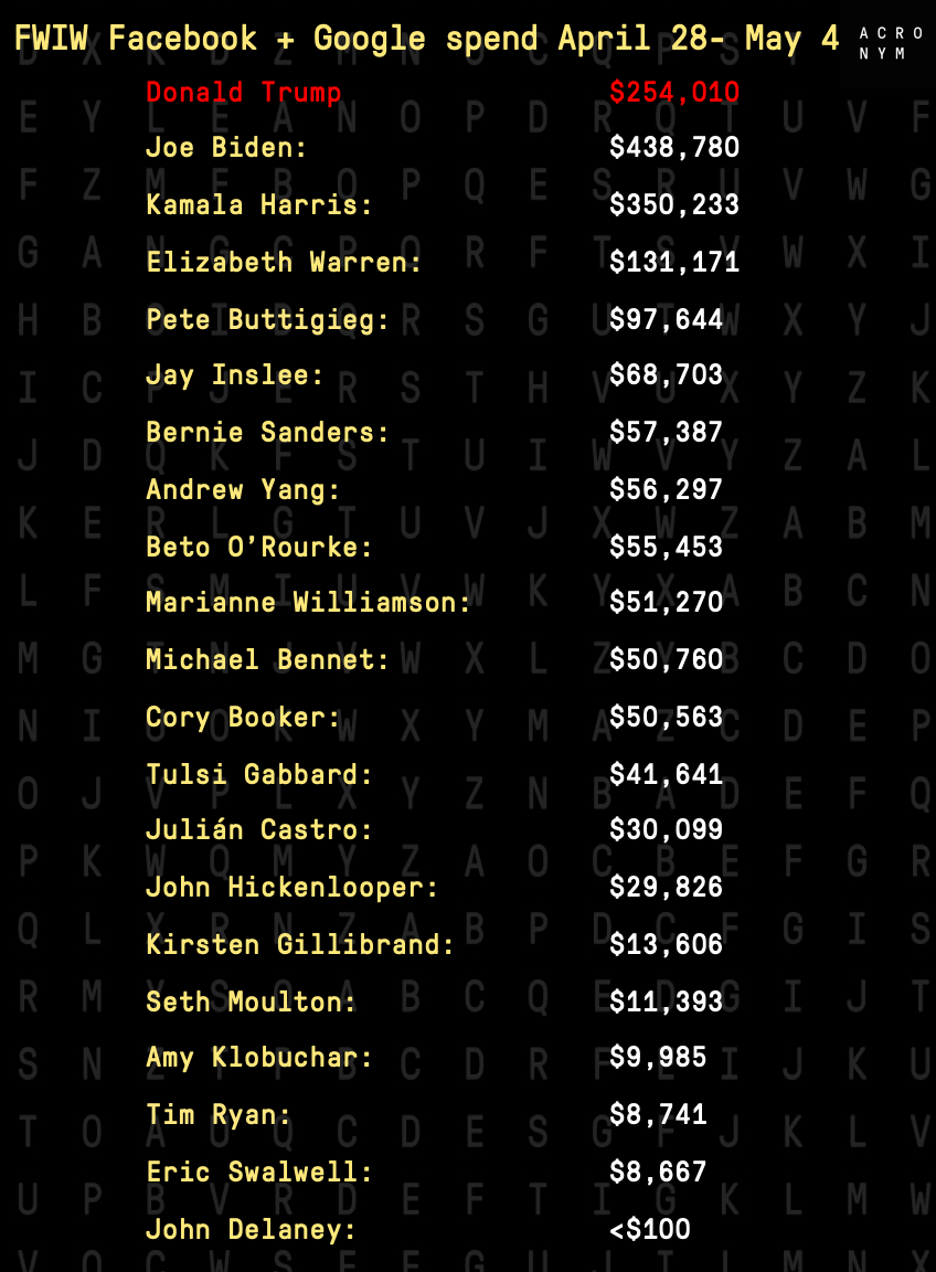 Welcome to FWIW, ACRONYM’s weekly newsletter breaking down digital strategy and investments across the political spectrum. Each week, we look at how campaigns are – or aren’t – leveraging smart digital strategies to drive narratives and win elections.