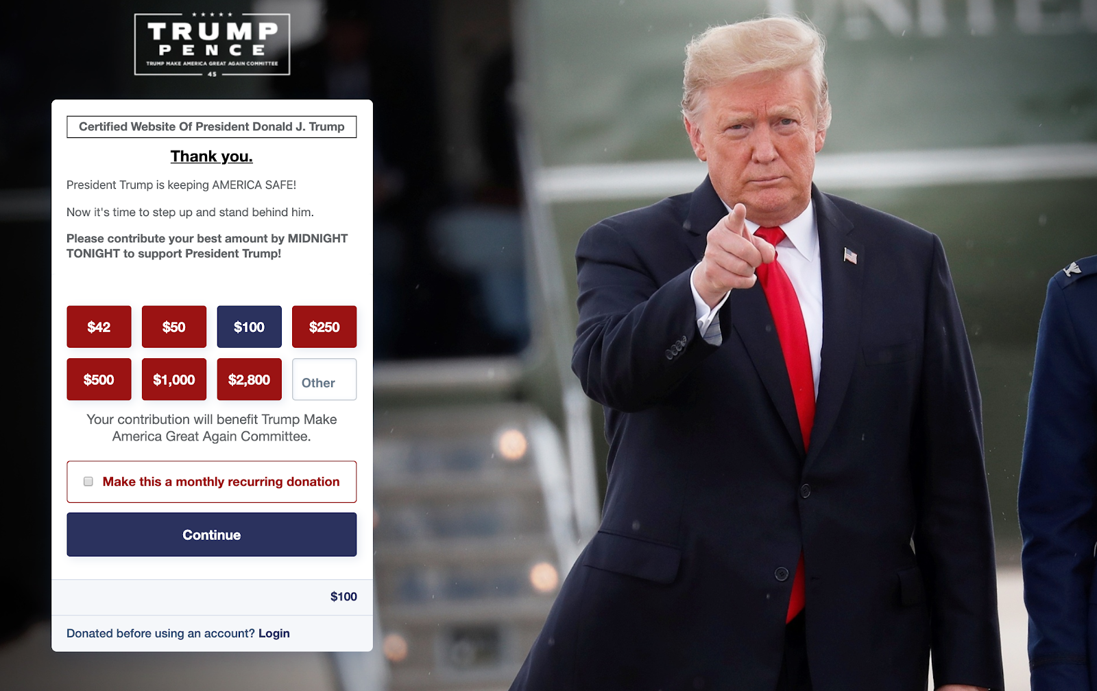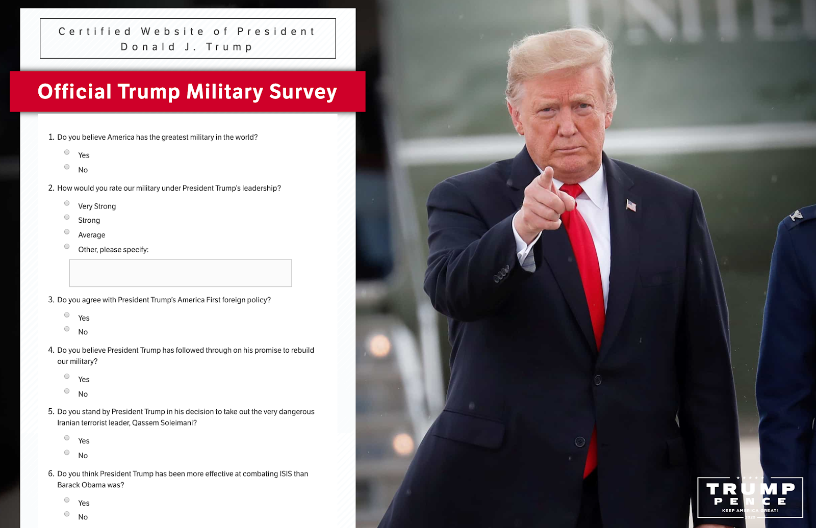 The marketing workflow of these ads first direct supporters to an ‘Official Trump Military Survey’, which asks crass questions like “Do you think President Trump has been more effective at combating ISIS than Barack Obama was?” and then re-directs those who complete the survey to a unique donate page.