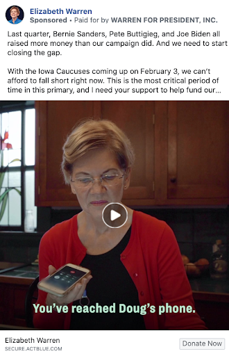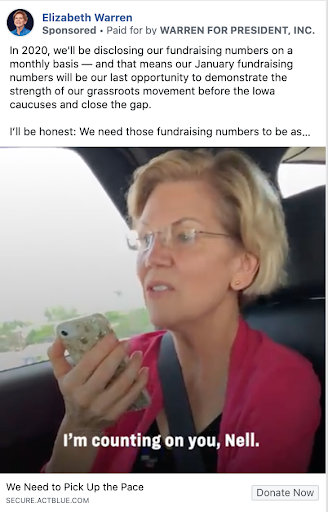 Regardless of the outcome of this primary, Elizabeth Warren’s campaign has introduced several new tactics that will very likely become a staple of modern digital campaigns. Above all else, her authentic, fun, sometimes emotional small donor call-time videos are a genius tactic for raising money on sites like Facebook. Expect these to be used up and down the ballot moving forward: