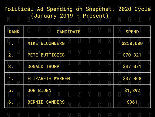 …and here’s total candidate spending on Snapchat so far this cycle: