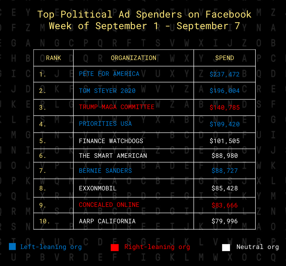 FWIW, here are the top spenders on Facebook for the week of September 1 - September 7:
