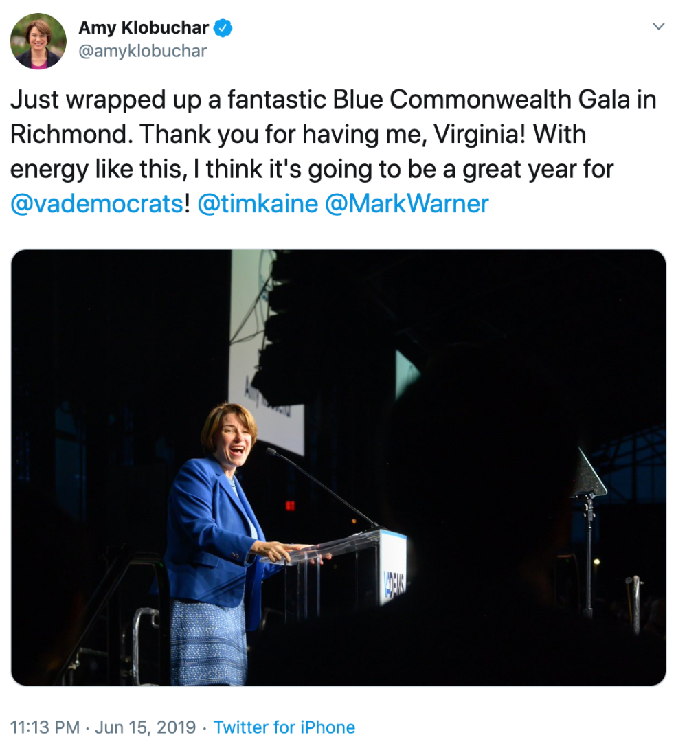 Aside from O’Rourke and Warren, a couple other candidates get a solid B+ for trying. Amy Klobuchar and Pete Buttigieg both headlined the Democratic Party of Virginia’s “Blue Commonwealth Gala” in June, which helped the state party fundraise, and likely brought a little more media attention to the event than usual.