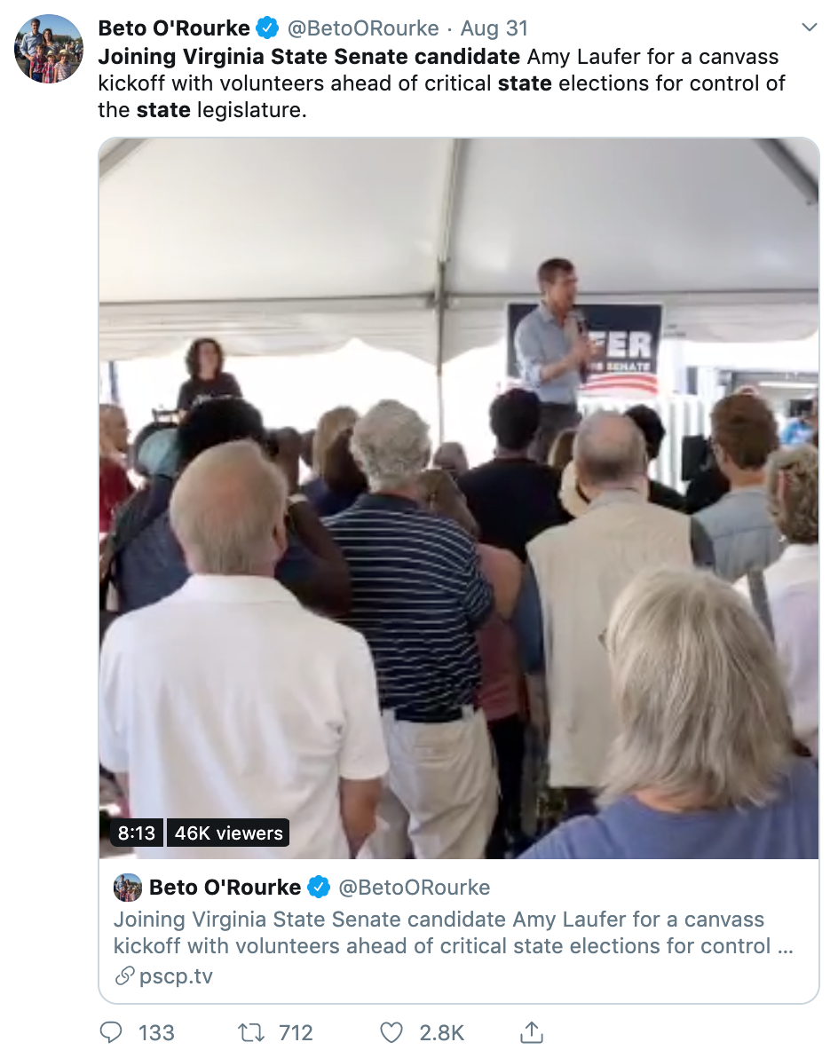 Beto O’Rourke was the first 2020 Democrat to visit Virginia back in April, and has been back since then to organize alongside local campaigns across the Commonwealth.