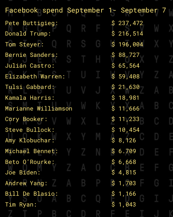 Here’s how much each 2020 campaign invested on Facebook advertising last week: