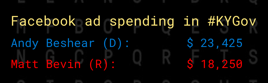 There are also three high-stakes gubernatorial elections this fall across the South - and although they take place in some ruby-red states, Democrats are expected to compete strongly both online and offline. TL;DR: STATE ELECTIONS MATTER. Here’s how much candidates on both sides have invested on Facebook advertising in the past 90 days: