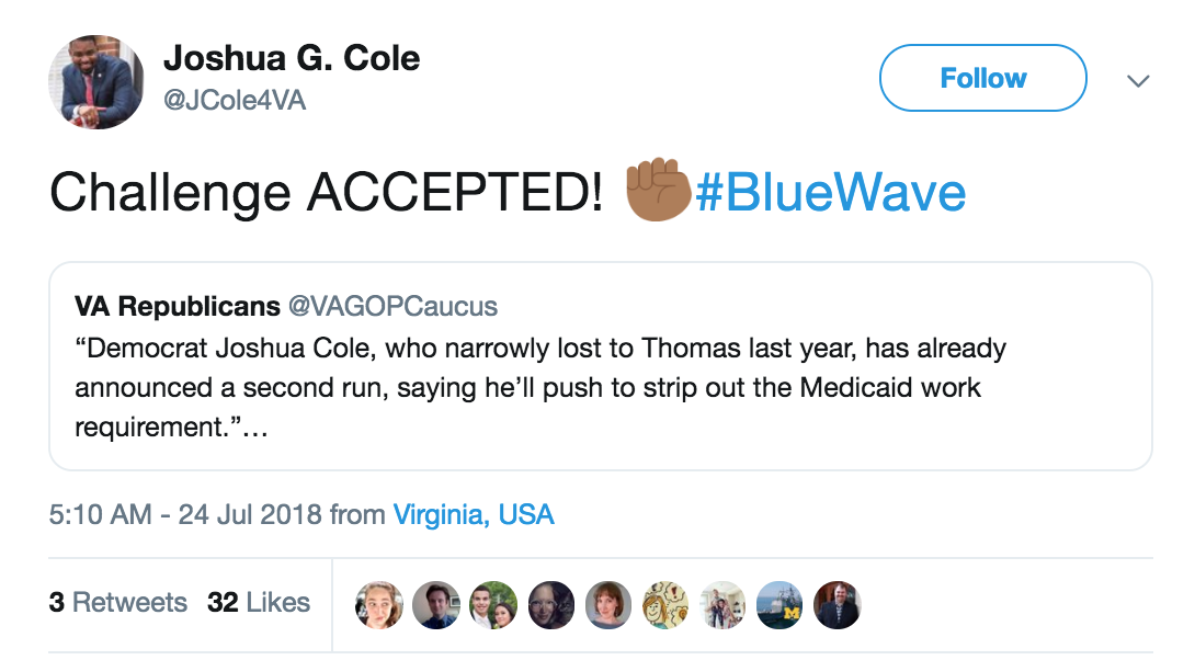 Keep an eye on HD-28. We know that even after the Republican primary, Medicaid expansion will remain an issue in the district - Democratic challenger Cole has already been communicating to his followers about removing the work requirement to access Medicaid in Virginia.
