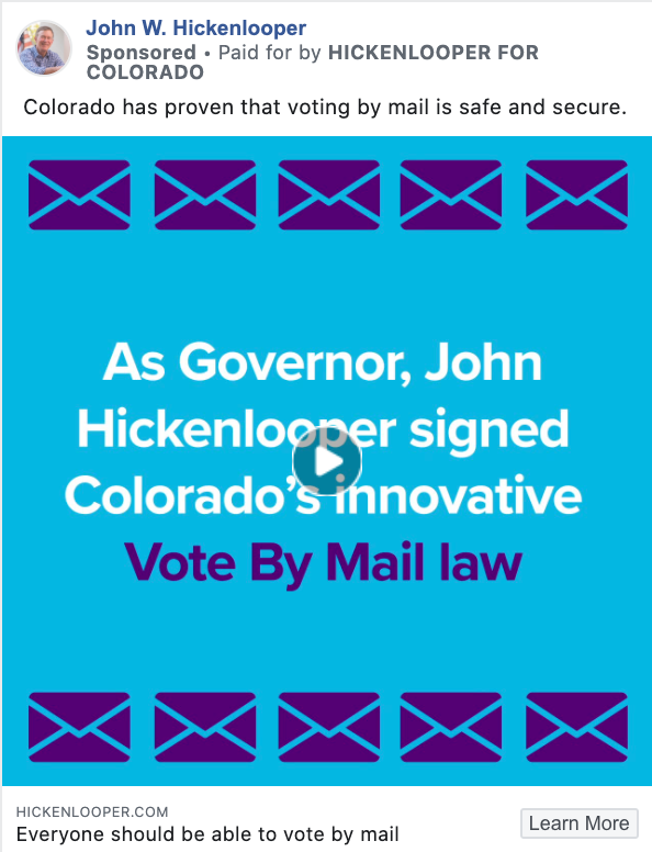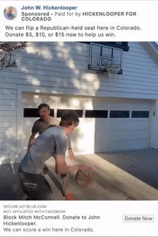 In one version of a slate of new video fundraising ads, Hickenlooper blocks a shot, and then says “And I’m also gonna block Mitch McConnell on the chokehold he has on the U.S. Senate.” His campaign is still running their more conventional ads, though, including one touting his enactment of vote by mail in Colorado.