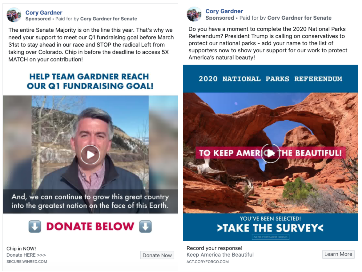 As for Cory Gardner, his fundraising tactics online seem to have focused on taking on the ~radical Left~ and protecting Colorado’s public lands. While it’s great that the Republican senator says he wants to preserve our national treasures, someone should probably tell him that the Trump administration is responsible for the most aggressive downsizing of public lands in American history.