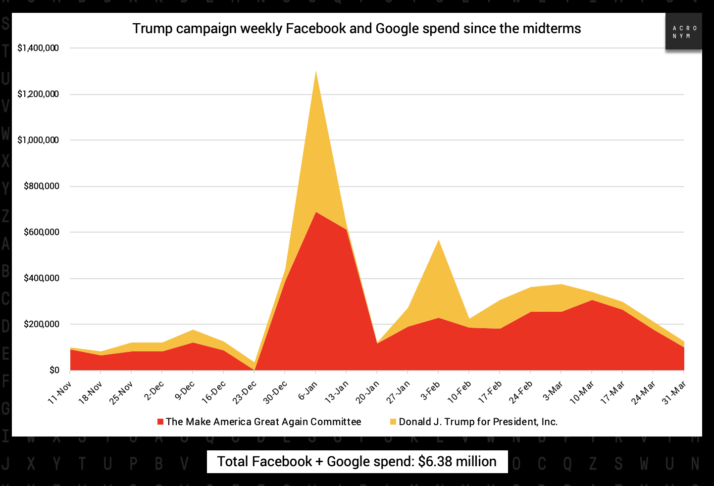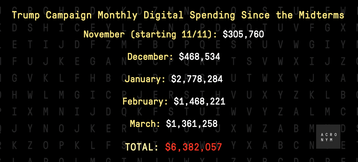 Donald Trumpâs online investment dipped below $200K this week, but heâs still spent over $6.38 million since the midterms.